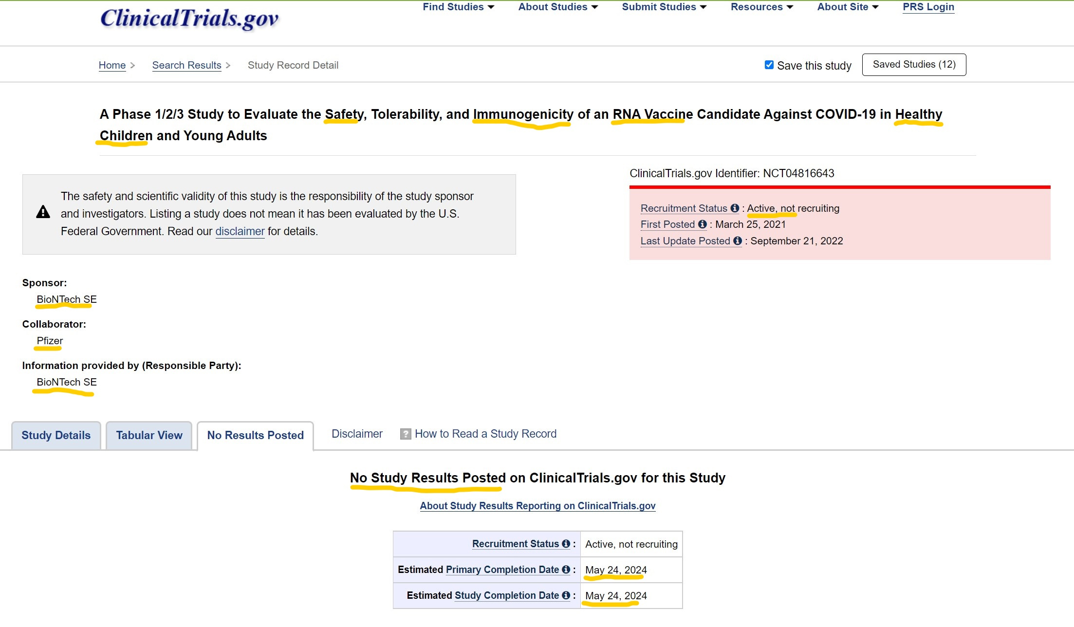 การศึกษานี้ยัง “active” หรือ ดำเนินการอยู่ ซึ่งแปลอีกอย่างได้ว่า “ยังไม่เสร็จ” ใช่ครับยังวิจัยไม่เสร็จว่า ปลอดภัยจริงไหม และเขาคาดว่าจะเสร็จเมื่อไหร่? “May 24, 2024” คาดว่าจะวิจัยเสร็จ วันที่ 24 พฤษภาคม 2567 ครับ ไม่ใช่ปีหน้านะครับ ปีนู้น อีกสองปีจะเสร็จ งั้นใครบอกว่า เขาทดสอบแล้วว่า “ปลอดภัย” กรุณาอ่านตรงนี้ดีๆหน่อยครับ