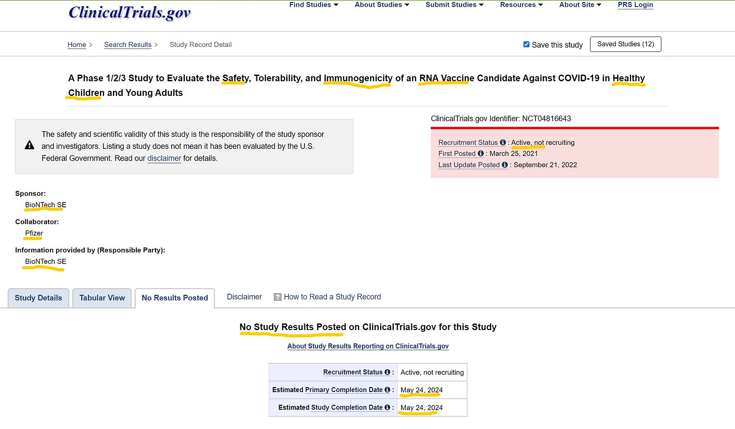 แต่วันนี้ผมจะพูดถึงงานวิจัย เลขที่ NCT04816643 เรื่อง A Phase 1/2/3 Study to Evaluate the Safety, Tolerability, and Immunogenicity of an RNA Vaccine Candidate Against COVID-19 in Healthy Children and Young Adults